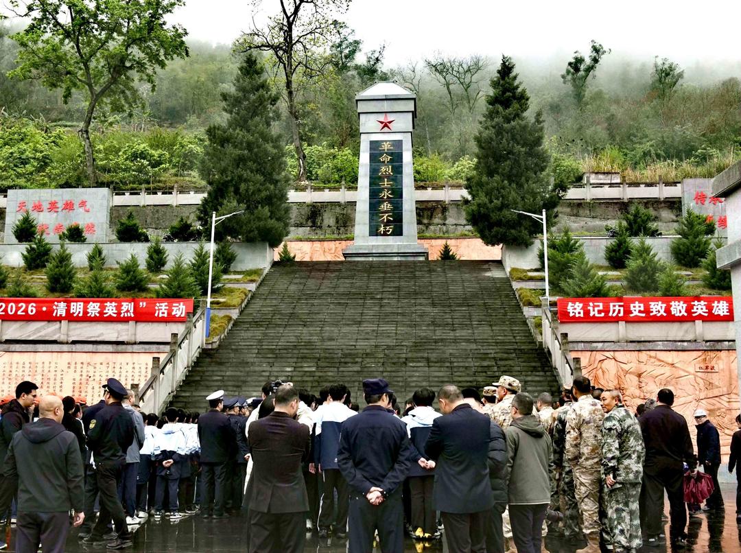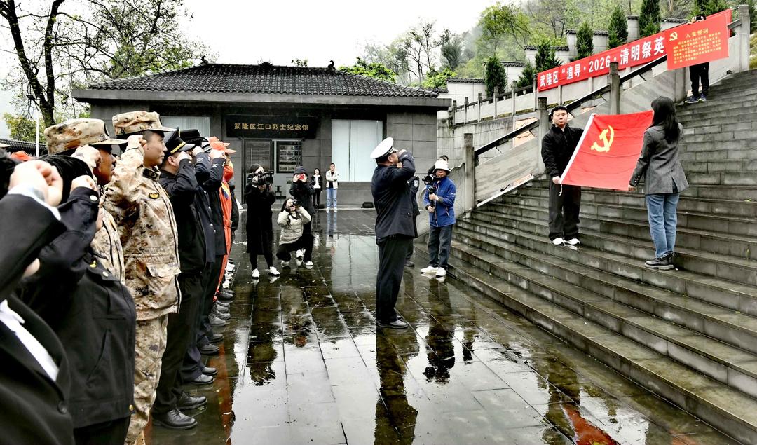 清明时节,细雨蒙蒙,武隆江口烈士陵园内庄严肃穆,“追寻·2026清明祭奠英烈活动”在此举行,各界人士齐聚缅怀先烈。