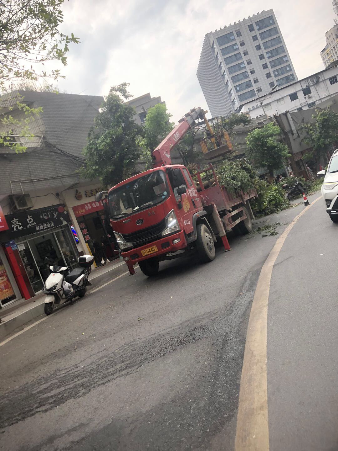 天气渐热,树也需要修剪,从邮政局到公路局这段的树枝已经修剪,立马亮堂许多。