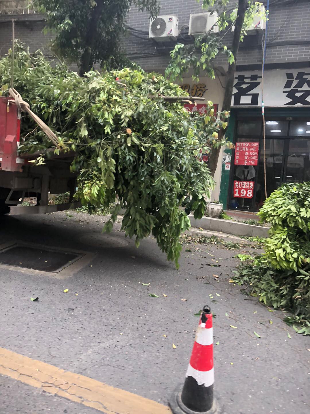 速度够快的,天星汽修厂对面已经在清理倒下来的树了