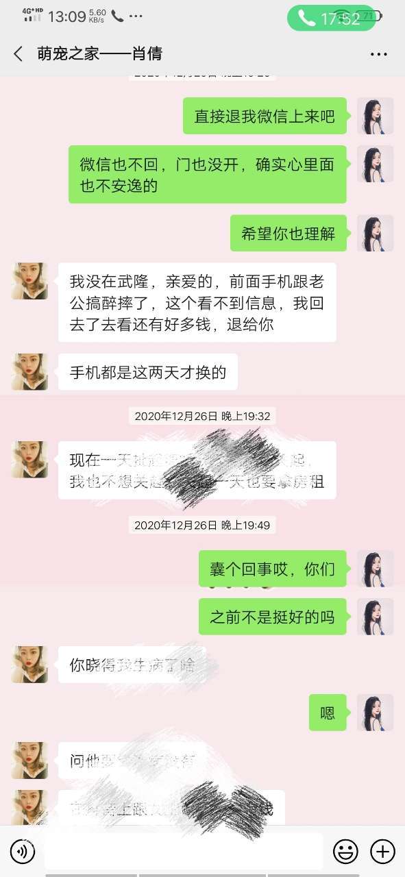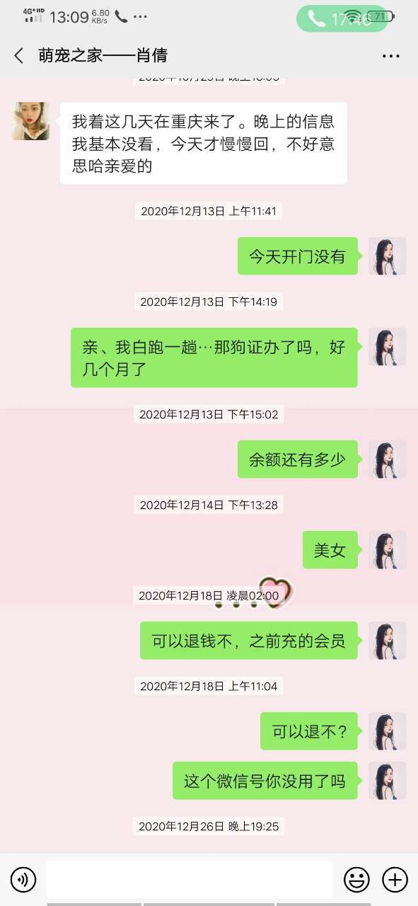 曝光,没诚信的宠物店——武隆萌宠之家,位置火车站斜对面。因为她的原因一天店不开,会员卡里剩下的钱说退也没退现在直接联系不到人了!电话给我拉黑,微信群还踢掉。