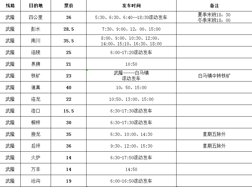 到涪陵客车最早几点发出