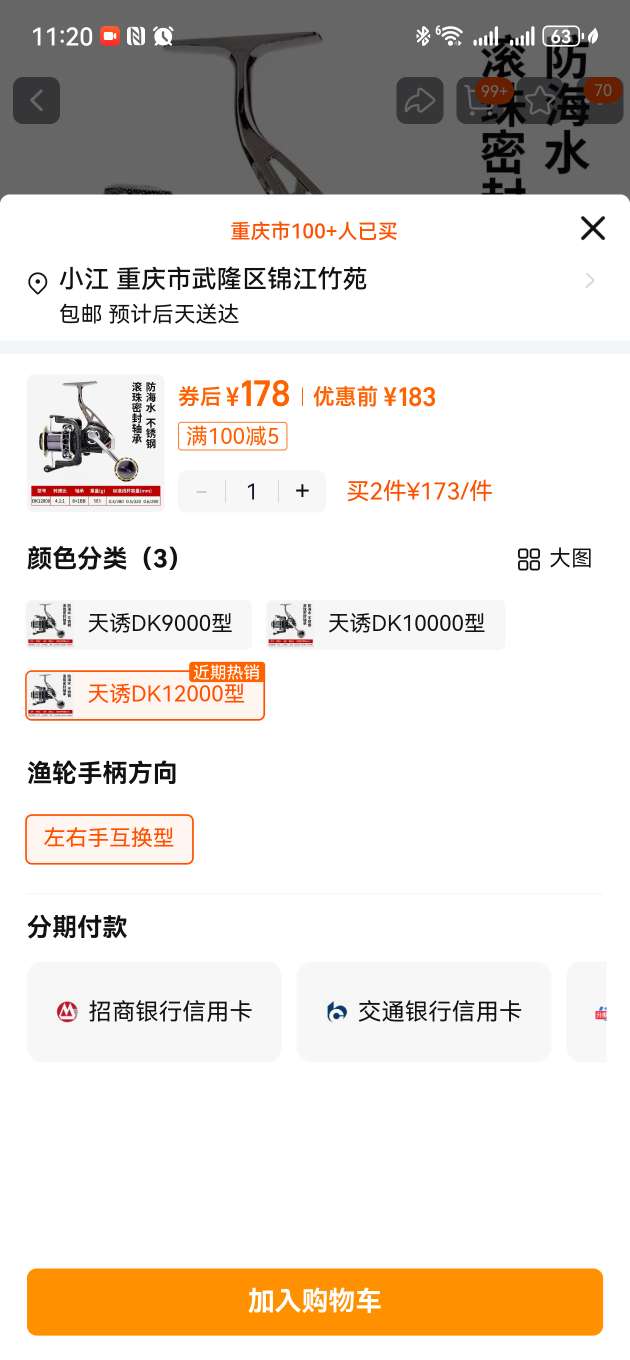 德岛全金属无间隙渔轮天诱DK12000型仅售175元