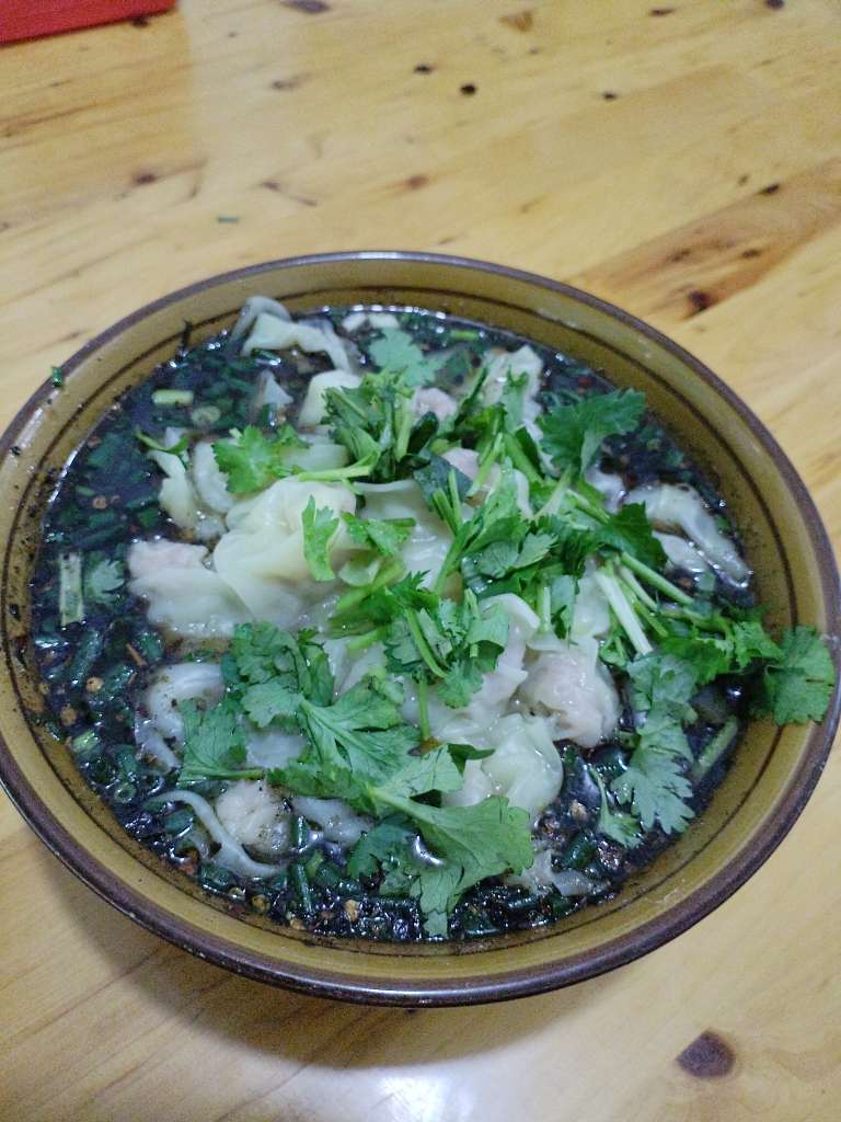 打卡丰都的包面。其实真正的包面还是跟抄手不一样。皮薄馅小。主要吃那个胡辣壳味。黑得像碳花个。听别人说,以前炒这么黑的辣椒,都是称的最撇的。降成本。不晓得现在老板还这样搞不。