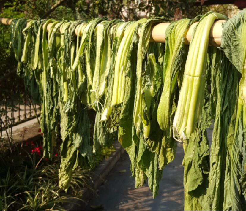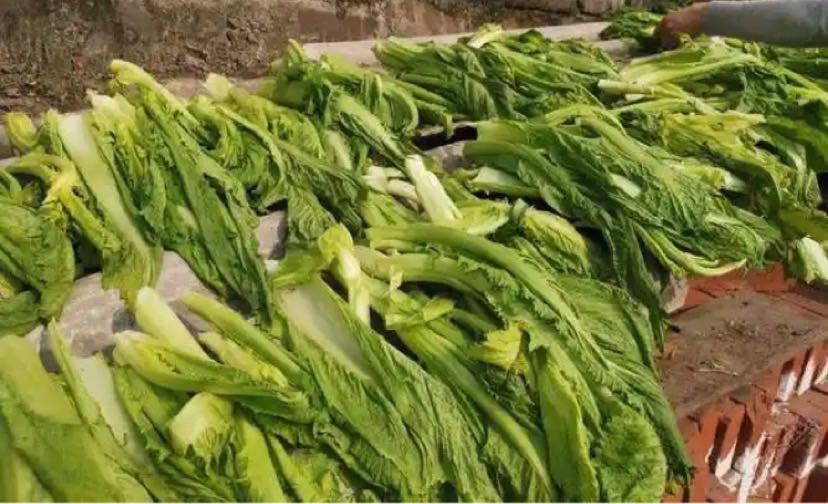 太阳好,开始晒盐菜了,蒸烧白不可少的美味