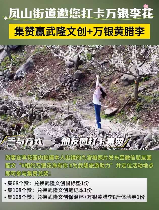 武隆凤山街道万银李花节喊你一起来玩啦🌸拍花海、拍美照,集赞就能领文创公仔+黄腊李,奖品超实在!我正在冲600赞,麻烦宝子们帮我点个赞🙏也欢迎大家一起参与,定位万银李花园,带上话题#相约万银花海有你 #为武隆旅游助力,一起赏春光~