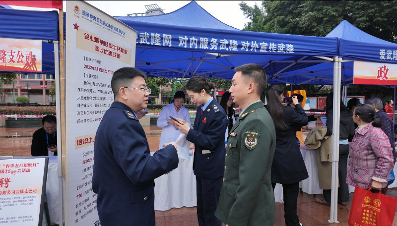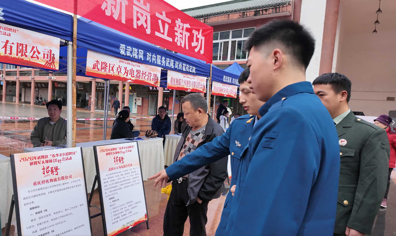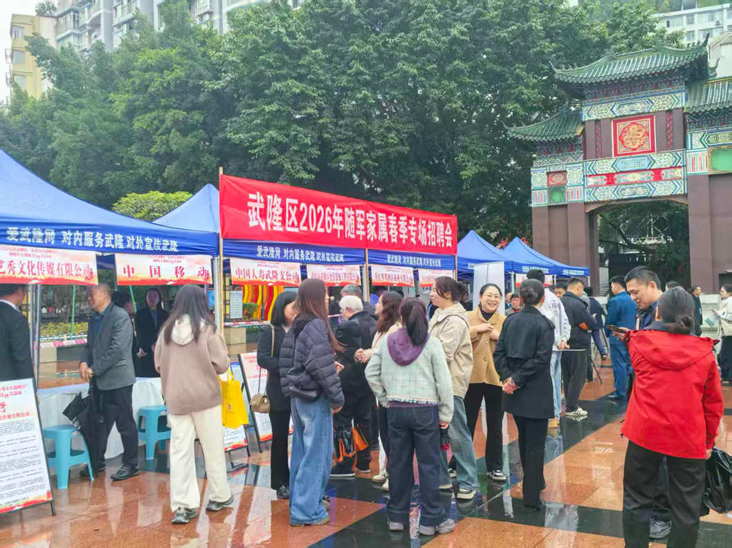 为进一步拓宽退役军人就业渠道,助力广大退役军人就业创业,满足广大用人单位的需求,3月26日上午,在武隆区人民广场由重庆市武隆区退役军人事务局主办,四川省乐山市退役军人事务局、重庆市武隆区人民武装部、重庆武隆工业园区管理委员会、重庆市武隆区人力资源和社会保障局、重庆市武隆区住房城乡建委、重庆市武隆区工商业联合会、重庆市武隆区退役军人服务中心协办,爱武隆人才网执行的2026年武隆区“春季老兵招聘月”退役军人现场招聘会活动成功举办。