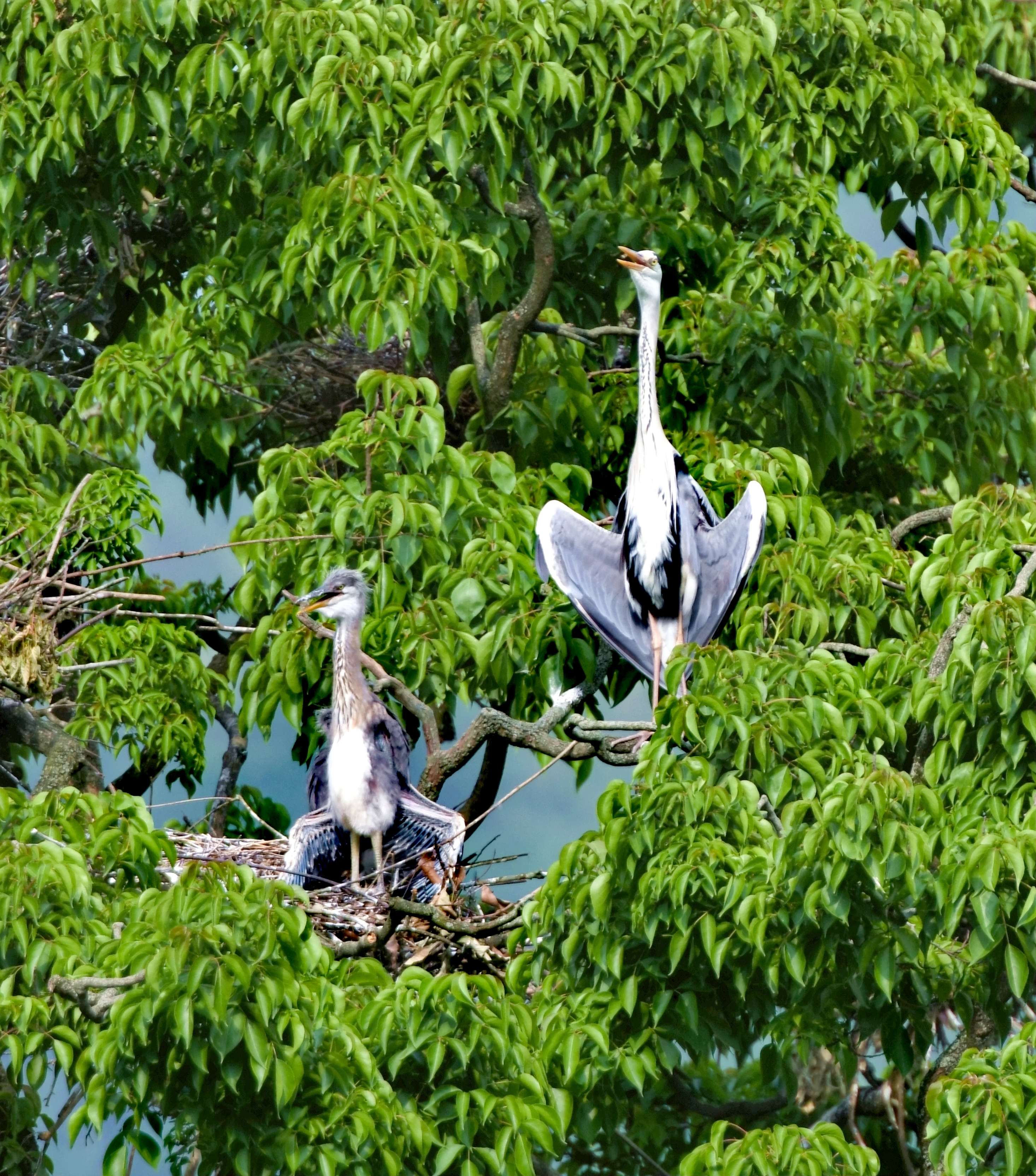 苍鹭父子:父音引吭穿云际,子声和鸣绕碧湖