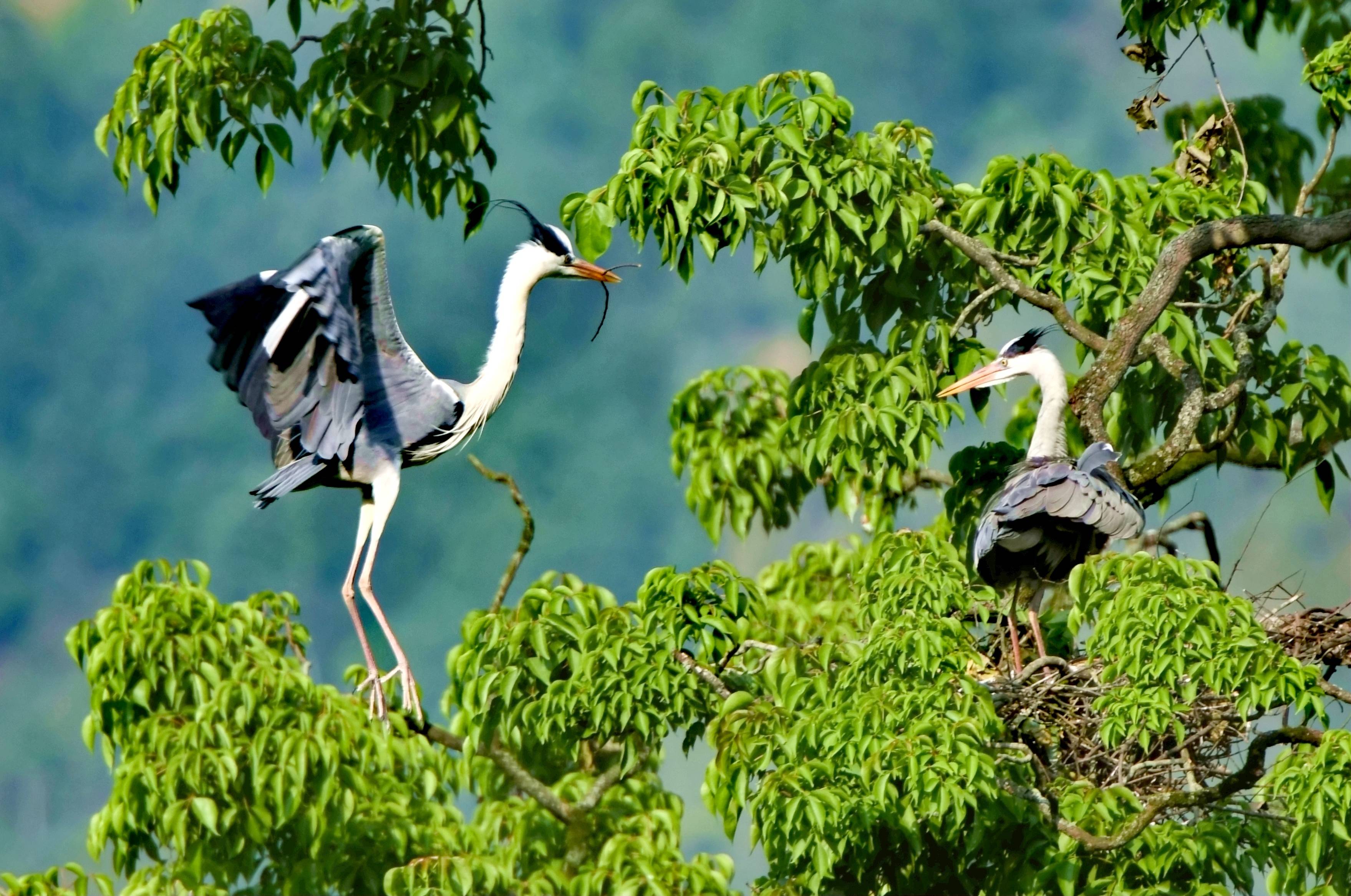 苍鹭夫妇营巢绘浪漫