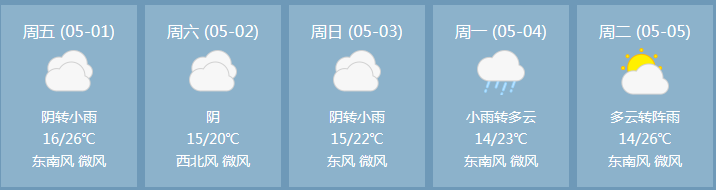 预计五一节期间,我区主要以阴雨天气为主,驾车途中请广大驾驶人一定要谨慎驾驶,注意减速、控距、亮尾,确保行车安全。