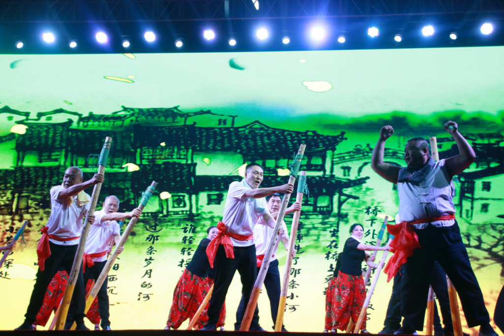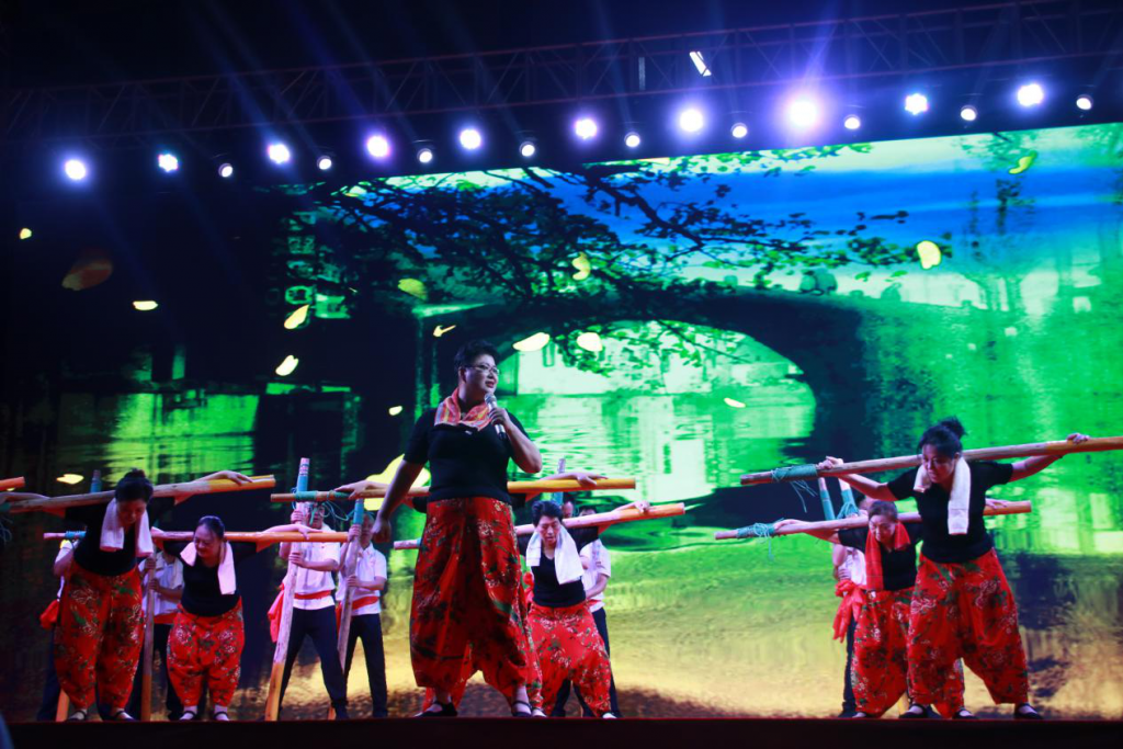 除此之外,本次文艺汇演的重头戏——抬石号子,更是将现场氛围推向了高潮。由百人参演的抬石号子,以其庞大的阵容和磅礴的气势唱出了劳动人民勤劳淳朴的品质,赢得了现场观众的热烈掌声。